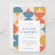 Entrez dans un monde de nostalgie et célébrez l'amour dans un style vraiment super avec notre mariage seventies Retro Vintage Invitation papier! Cette invitation présente un motif captivant inspiré par l'esprit dynamique des années 1970 et 1960, mêlant demi-cercles et coquilles Saint-Jacques. La motif est élégamment conçue dans une palette de bleu, d'orange et de jaune, sertie contre un arrière - plan écru classique, créant un équilibre parfait entre nostalgie et élégance. Carte inversée dans un bleu profond assorti à l'espace pour votre photo Best fiançailles (ou photo de couple) et QR CODE. Très facile à customiser : ajoutez le nom de votre invité et tous les détails en utilisant le modèle.