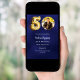 Une invitation photo moderne et minimaliste pour une fête de 50e anniversaire. Un arrière - plan bleu marine inégal. Personnalisez et ajoutez une photo et les détails de la fête.