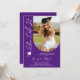 Photo Graduation Party Modern Elegant Script Invitations présente votre photo préférée avec le texte "She'It" dans élégante typographie de script de calligraphie sur un arrière - plan violet. Ajoutez ci-dessous les informations sur l'invitation à passer votre diplôme. Personnalisez en modifiant le texte dans les zones de texte fournies. Envoyer comme un téléchargement numérique instantané, comme une invitation physique par courrier ou les deux. Créé par ©2025 Evco Studio www.zazzle.com/store/evcostudio