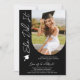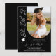Photo Graduation Party Modern Elegant Script Invitations présente votre photo préférée avec le texte "She'It" dans élégante typographie de script de calligraphie sur un arrière - plan noir. Ajoutez ci-dessous les informations sur l'invitation à passer votre diplôme. Personnalisez en modifiant le texte dans les zones de texte fournies. Envoyer comme un téléchargement numérique instantané, comme une invitation physique par courrier ou les deux. Créé par ©2025 Evco Studio www.zazzle.com/store/evcostudio