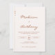 Faire-part de mariage en terre cuite moderne et chic avec script de calligraphie élégant et initiales monogrammes personnalisées avec code QR personnalisé, photo personnalisée et informations plus mariages détaillées sur le dos.