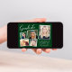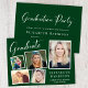 Invitation de la fête verte moderne de graduation avec un collage photo de 5 images dans des cadres blancs, "Graduate" dans un script blanc élégant, le nom de la grade dans la typographie blanche élégante et leur année d'école et de classe dans la simple typographie blanche. Customisez les détails de votre fête au verso.