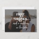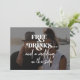 Simple et amusant photo superposition noir et blanc tendance rétro typographie audacieuse faire-part de mariage avec un drôle décontracté "boissons gratuites et un mariage sur le côté" script de typographie informelle.