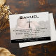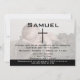 Invitez vos amis et votre famille à célébrer la dédicace spéciale de votre enfant avec ces invitations photo de bébé modernes en noir et blanc. Le design minimaliste présente une simple croix avec le nom de votre fils/fille, accompagné des détails de votre cérémonie et de votre célébration. Cartes de dédicace de bébé. Superposition de filtre blanc pour faire disparaître la photo en arrière-plan.