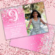 Photo Parties scintillant rose 9e anniversaire Invitation Girly Parties scintillant rose 9e anniversaire invitation pour une fille de 9 ans avec écriture de script moderne et des ballons de papier amusant.