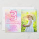 Photo Pink Rainbow 3ème anniversaire Invitation Girly Pink Parties scintillant 3ème anniversaire invitation pour une fille de 3 ans avec écriture de script moderne et des ballons de papier amusant.