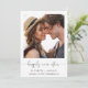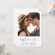 Fuite en amoureux simple et chic ou annonce de mariage privé et invitation à la réception après le mariage. Le devant présente votre photographie, « pour toujours heureux » dans un script élégant avec enjolivures et vos prénoms, date et lieu du mariage. Au verso, personnalisez votre annonce et invitation avec plus de détails, créez un code QR lié à votre site web de mariage pour que vos invités scannent pour plus d'informations et répondent en ligne, et ajoutez vos noms dans un script ressemblant à une signature.