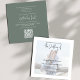 Ce design comprend un code QR RSVP en ligne modèle d'invitation verte, avec des couleurs simples de couleur verte mousse, une réponse élégante moderne, une couverture transparente de vellum photo classique, avec un code QR scannable généré, parfait pour ceux sur un budget avec vert terre, un simple classique moderne de classe moderne, informations sur les invités, ajouter votre site Web lien URL, une suite de calligraphie élégant