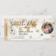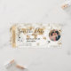 Destination Beach Wedding Boarding Pass Billet Gold Plane Économisez la Date avec l'icône coeur et avion avec des feuilles tropicaux. Ajouter votre photo