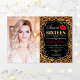 Photo Sweet 16 Anniversaire - Red Kiss Empreinte de léopard Invitation. Sweet sixteen invitation fête d'anniversaire avec votre photo. Caractéristiques empreinte de léopard, police de script, baiser de lèvres et confetti. Design animal élégant avec de l'or de parties scintillant fausse. Idéal pour une élégante fête du 16ème anniversaire.