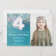 Photo 4th Birthday Invitation Turquoise et Parties scintillant d'argent 4th anniversaire invitation pour un enfant de 4 ans avec écriture de script moderne et ballons de papier amusant.
