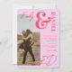 Un faire-part de mariage moderne et audacieux avec des noms personnalisés avec une calligraphie manuscrite et une police serif, 2 noms, deux styles. Tous le texte, les noms et les couleurs arrière - plans sont personnalisables avec 2 photos et la photo en arc avec rose chaud rétro et rose pastel. Une invitation simple et minimaliste, ajoutez votre code qr pour rsvp, les détails et le tout en un seul invitation.