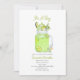 Baby shower à thème de chiche et de crème glacée avec laitshake dingue de cornichon dans pot de mason avec arc rose, marguerites et pacifier vert.