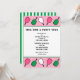 Invitations créatifs de la fête du pickleball avec ligne de rose amusante, thème sportif, et motif de paddles rose et vert chaud pour les joueurs de pickleball.