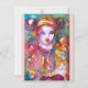 Peinture aquarelle colorée, vibrante et fantaisiste par Bulgan Lumini (c) en rouge vif, jaune, bleu, blanc, violet inspirée du Carnaval de Venise et de la Commedia dell'Arte.