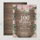 Invitation Pignons roses floraux rustiques 100e anniversaire