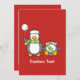 Un petit dessin de pingouin avec boule de neige et un évanoui. Les deux portent des foulards verts et des chapeaux santa.