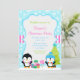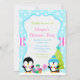 Cette fête de Noël de pingouins Invitation présente une jolie famille de pingouins dans une scène hivernale avec eux debout à côté d'un arbre de Noël. (33) Graphiques par ClipArtopia