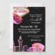 Cette invitation personnalisée a un thème glamour Las Vegas. Le panneau d'accueil est placé en haut à gauche avec une paire un dés brillant jouant avec des accents dorés représenté devant. Le skyline de Las Vegas est imprimé en bas avec des cartes et des puces de néon en face. L'arrière - plan est un noir solide avec des confettis de parties scintillant rose sur les parties supérieure et inférieure. La partie arrière de l'invitation est une texture de feuille rose chaud avec des confettis de parties scintillant assortis. Il est parfait pour un week-end de bachelorette, un anniversaire ou tout autre événement spécial.