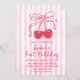 Invitation Pink Bow Fruit Sweet Cherry First Birthday
