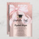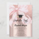 Invitation Pink Bow Grad Cap Rose Gold Glitter Graduation