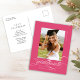 Pink Elegant Script Graduation Party Invitation Postcard dispose d'un script magnifique et élégant superposant votre photo, ainsi que les détails de votre fête et la photo sur le dos.
