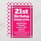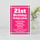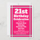 Envoyez des invitations à une fête du 21e anniversaire avec cette Invitation du 21e anniversaire rose. Il peut être customisé avec vos informations personnelles.