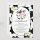 Baby shower à thème vaches mignonnes pour un petit garçon avec une jolie vache noire et blanche, un motif imprimé vache noir et blanc et quelques jolies arrangements floraux roses roses. La conception de l'invitation baby shower de cette vache sainte est une façon mignonne pour les invités invitations au baby shower d'une fille à thème de vache.