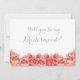 Cette carte d'invitation de demoiselles d'honneur a une jolie bordure saumon rose et rouge fleurie de géranium au fond. Votre texte personnalisé en gris doux est au-dessus de la bordure de fleur, et les deux sont placés sur un arrière - plan blanc pur. Le dos est blanc avec le reste du texte personnalisé en gris et en rose saumon. Simple, mais élégant !