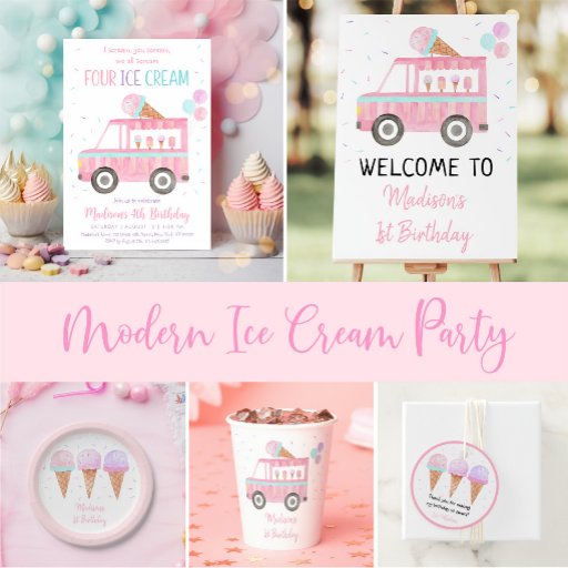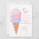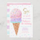 Cette invitation mignonne présente mon cône de crème glacée à l'aquarelle peinte à la main avec des embellissements de parties scintillant en faux or.