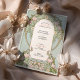 Cette gracieuse faire-part de mariage présente des lys roses doux, des fleurs blanches délicates et des feuillages pastel tissés dans un cadre Art Nouveau orné. Le design floral s'enroule autour du texte central dans une arche raffinée, joliment dressée contre un arrière - plan vert sage et doux. Inspiré par l'élégance décorative du début du XXe siècle, les détails complexes de la frontière et le design monogrammé du dos évoquent un sentiment de romantisme intemporel. Parfait pour les mariages de printemps, les cérémonies de jardin ou les amateurs d'esthétique vintage fleurie. Personnalisez cette invitation pour une fête mariage qui fleurit de charme artistique.