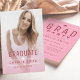 Annonces de graduation de typographie moderne et minimale avec photo, invitation de fête de graduation amusante sur le dos en rose, rouge et blanc, Personnalisez-le avec votre propre photo et informations de fête.