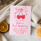 Invitation Pink & Red Bow Cherry Fruit 1st Birthday Party