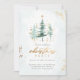 Invités Invitations à votre fête de Noël avec notre Invitation de fête de Noël. L'aménagement comprend des pins aquarelles ornés d'étoiles dorées et d'accents de poussière. "Christmas" est élégamment scénarisé en faux or, avec la typographie serif chic pour les détails de votre fête. L'envers correspond au thème de l'aquarelle, donnant le ton de votre rassemblement festif.