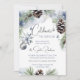Fête de Noël fêter la saison de l'aquarelle pins enneigés avec cônes de pin argent baubles flocons de neige modifiable invitation modèle instantanément télécharger.