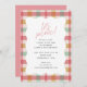 Un pique-nique dans l'invitation du parc avec une couverture de pique-nique plaid en vert, rouge et jaune. Vous pouvez utiliser ce design pour des pique-niques à la maison, des fêtes de pique-nique d'anniversaire, des pique-niques d'équipe, des fêtes du personnel, des soirées de billard ou des fêtes d'été générales.