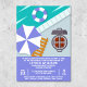Faites un splash avec cette invitation amusante à la fête du BBQ billard de remise de diplômes! Ambiance estivale avec un graphique d'une piscine chatoyante avec un flotteur de piscine amusant. Une chaise longue confortable est nichée sous un parasol ombragé et des hamburgers alléchants sont disposés sur le grill. Une palette de couleurs turquoise et bleue garde l'invitation à l'air frais et moderne. Parfait pour une grande fête au bord de la piscine. Modifiez facilement les modèles de texte pour votre invitation personnalisé. Disponible sous forme de cartes d'invitation imprimées ou en téléchargement instantané pour envoyer sur votre téléphone.