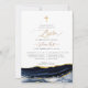 Invitation PixDezines Baptism, avec agate aquarelle en bleu marine et veines faux or, un accent croisé avec script de calligraphie de luxe. Tous les éléments modifiables et amovibles. Copyright © 2023 PixDezines™. Tous droits réservés.