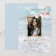 Votre photo Enregistrer la date | Un cadre géométrique triple or, car cet élégant cadre de plage de bord de mer avec vagues blanches donne l'impression de votre plan de mariage de destination. Derrière se trouve un beau ciel bleu avec des nuages moelleux. Des fleurs de magnolia pâles et rousses ornent le coin. OEuvre originale créée spécialement pour BarefootBride™ par © WhimsicalArtwork™ - Il s'agit d'une suite de papier à lettres Mariage complète avec papier à lettres mariage, baby shower et autres articles de papeterie.
