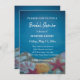 Plage bleu profond invitation wedding shower, Beau bleu profond océan mariage thème avec étoiles de mer et coquillages multicolores sur un sable blanc