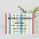 Plage côtière colorée rayures Anniversaire Invitation. Invitation tous vos amis et votre famille à votre fête d'anniversaire sur le thème de la plage côtière avec ces magnifiques rayures colorées invitations d'anniversaire. Personnalisez en ajoutant tous les détails de votre fête !