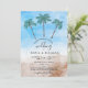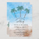 Planifiez votre mariage dans une île paradisiaque romantique de rêve ? Invitez vos invités avec cette belle invitation avec illustration de palmiers à l'aquarelle