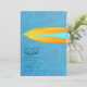 Célébrez votre graduation avec un peu de plaisir! Cette invitation dynamique présente un design cool turquoise et jaune sur le thème de la plage, parfait pour les diplômés amateurs de surf. L'élément photo personnalisé vous permet de mettre en valeur votre personnalité, tandis que l'ambiance surfeur apporte une touche décontractée et tendance à votre fête. Idéal pour tout diplômé qui souhaite combiner le style de plage décontracté avec leur grande fête.