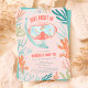 Plongeons et amusons-nous ! Faites un peu de plaisir à votre douce fête de 16 ans avec notre Eté Scuba plongée aquarelle de vie marine invitations à l'illustration sur rose pastel. Parfait pour l'aventurier sous-marin en vous ! Doté d'un masque de snorkeling rempli de poissons, de tortues et de mignons animaux de la mer, avec corail orange et algues bleues. Ajoutez votre photo à l'arrière. Parfait fête d'été pour toute fête d'anniversaire d'âge!