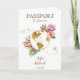 Destination Mariage Floral Invitation moderne et colorée, comme passeport. Monde doré carte la première page, avec des fleurs tropicales. Conception parfaite pour votre mariage d'été sur la plage. Ajoutez le code QR de votre site Web mariage
