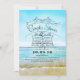 Elégants couples de plage vintage / rétro douche invitations avec mer turquoise, ciel et sable de plage.