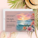 Invitation à une fête d'anniversaire pour femmes avec une peinture à l'aquarelle d'un beau coucher de soleil sur une plage couverte de palmiers tropicaux et de fleurs.