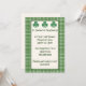 Le plaid vert et blanc est l'arrière - plan de cette invitation à la fête de la Saint Patrick, avec trois shamrocks verts chanceux de noeuds celtiques au sommet d'un cadre vert et crème. Le dos est une couleur de parchemin solide, correspondant à l'intérieur du cadre sur l'avant.