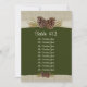 Les cônes de pin sylvestre et le burlap ont l'air d'une carte de plan mariage en vert olive foncé. Personnalisez individuellement pour chaque table avec un numéro de table et le nom des invités à chaque table.