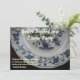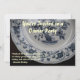 Une assiette décontractée bleue et blanche est le arrière - plan de cette invitation à dîner.